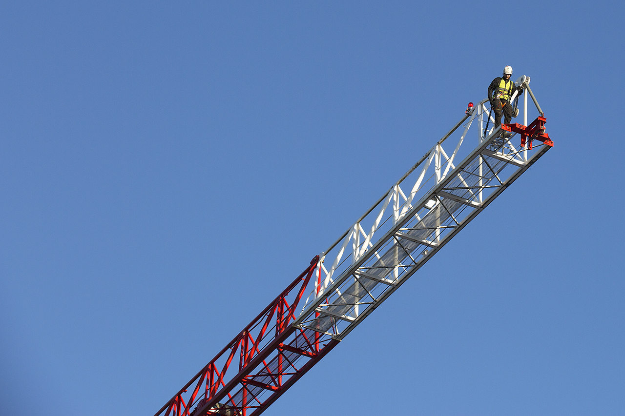 Är man inte van vid höjder lär pulsen stiga rejält då de gäller att kolla kranbommens yttre delar utanför ramen.
