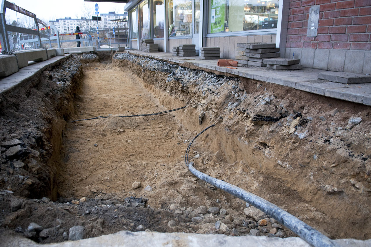Ny elcentral kommer byggas på parkeringen och kablar kommer grävas ned genom hela centrumet samt bussgatan.