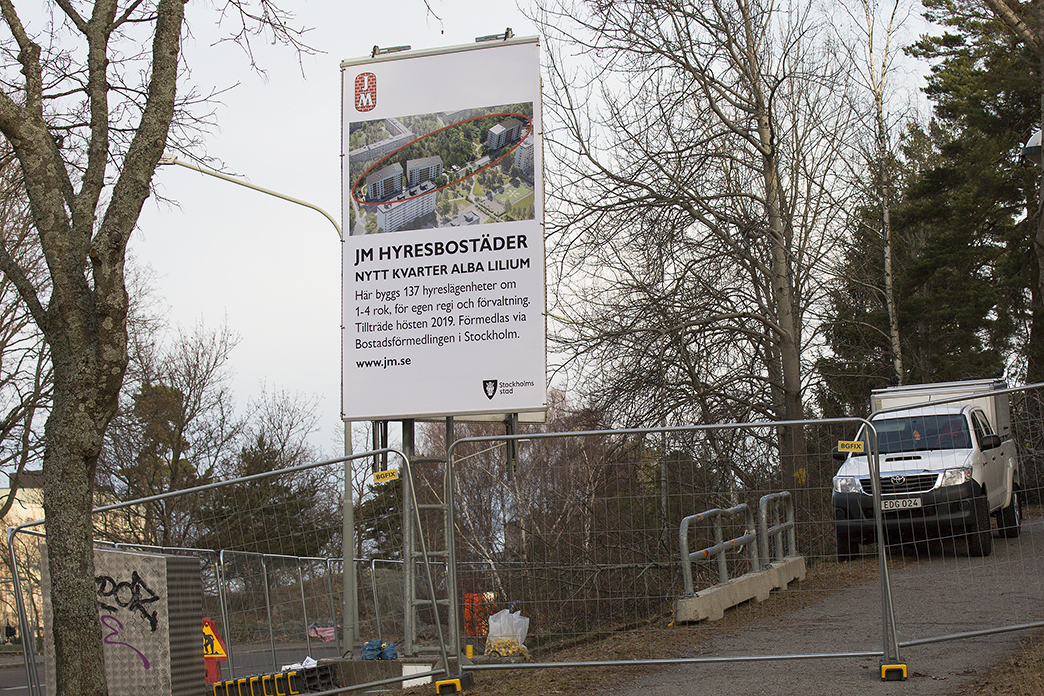 JM markbereder för byggstart av 137 st nya hyreslägenheter vid Vita Viljans Väg i Bredäng.