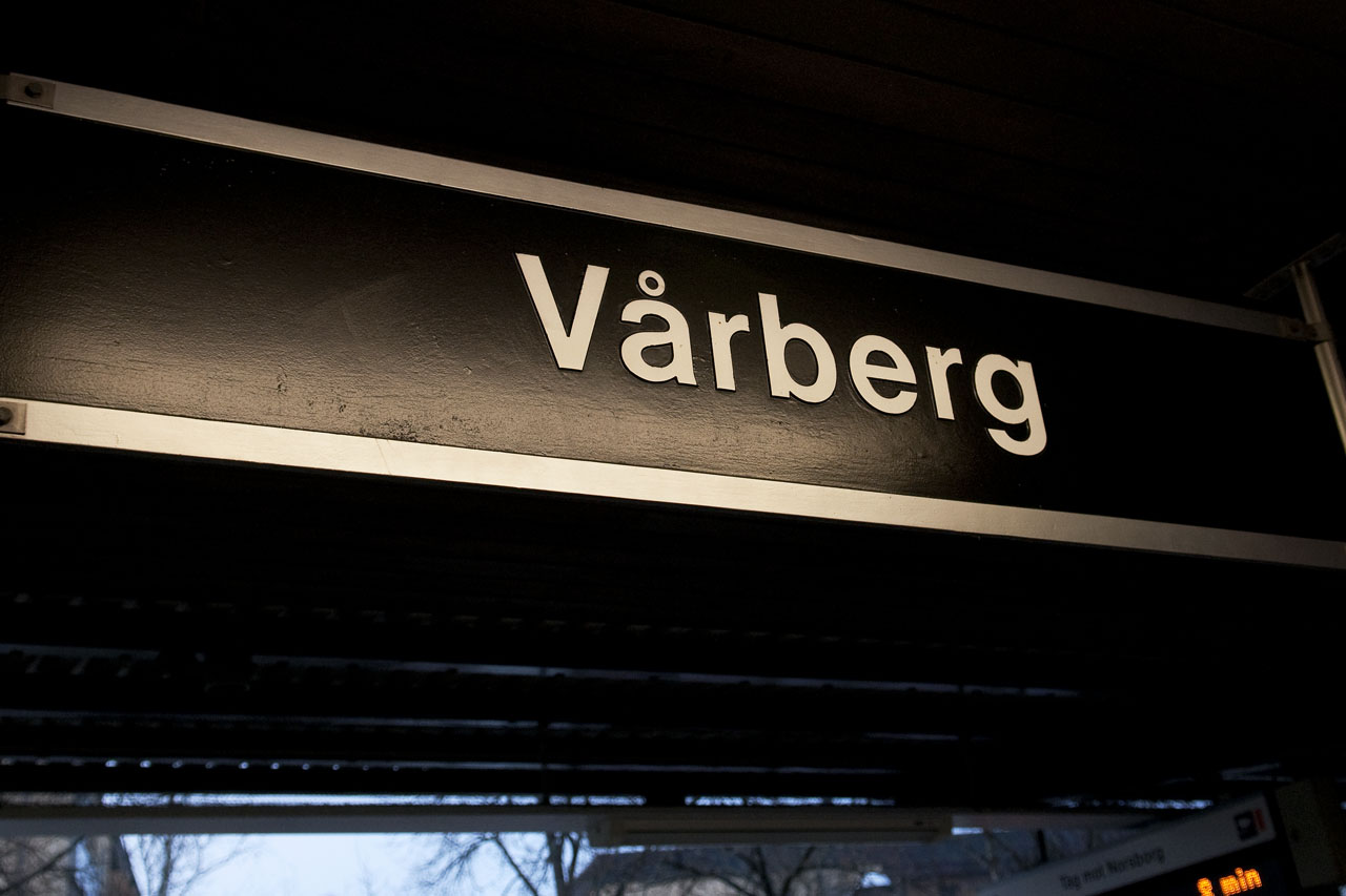 Vårberg stationsskylt. Foto: Patric Lindén / Internetfoto